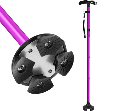 Bastón Offset con mango acolchado suave-bastón ajustable para caminar para mujer-bastón morado